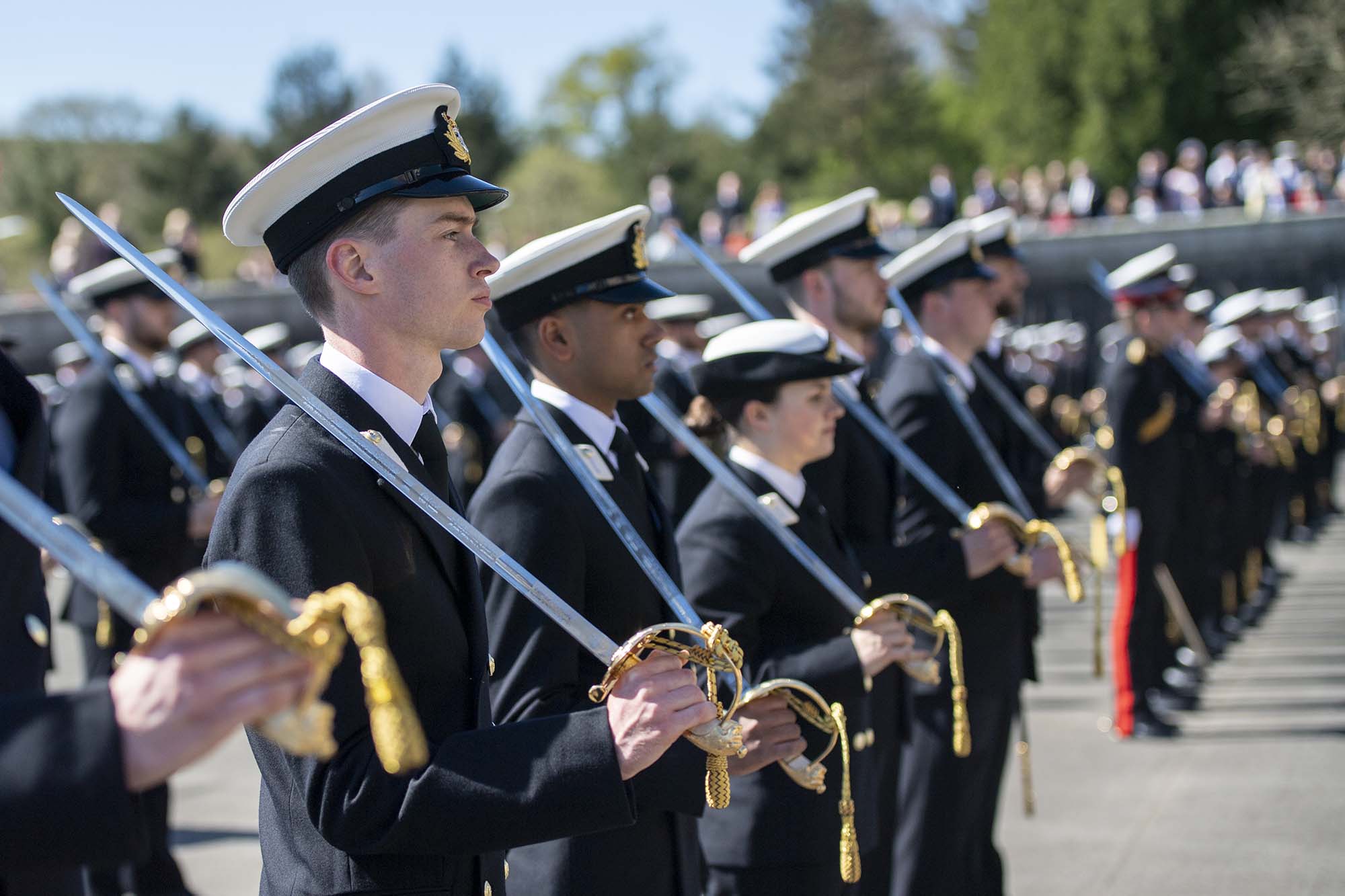 Joining the Officer Cadets on parade were seven officers from the Royal Fleet Auxiliary, 19 Senior Upper Yardmen (SUY), and 14 warrant officers, all newly commissioned.