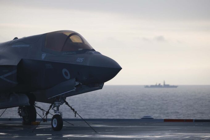 British and Italian carrier air and sea power converged over the Mediterranean as Italian and UK F-35B jets, joined by Italian Navy AV-8B Harriers, flew in formation over HMS Prince of Wales and Italy’s flagship Cavour.