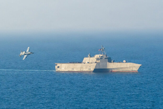 The U.S. Navy Independence-class littoral combat ship USS Santa Barbara has carried out a live-fire maritime gunnery exercise in the Persian Gulf, supported by U.S. Air Force A-10 Thunderbolt aircraft.