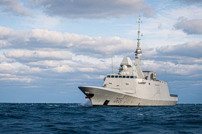 French Navy frigate Aquitaine is currently inbound to the King George V Dock in Glasgow in Scotland for a routine port visit.