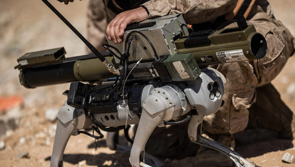 In September 2023, US Marines conducted a proof of concept test involving another four-legged utility robot. They measured its abilities to “acquire and prosecute targets with a M72 Light Anti-Tank Weapon”.