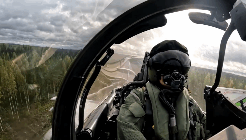Footage from a GoPro has captured the view from inside a British Typhoon fighter as it lands on a road in Finland as part of an exercise.