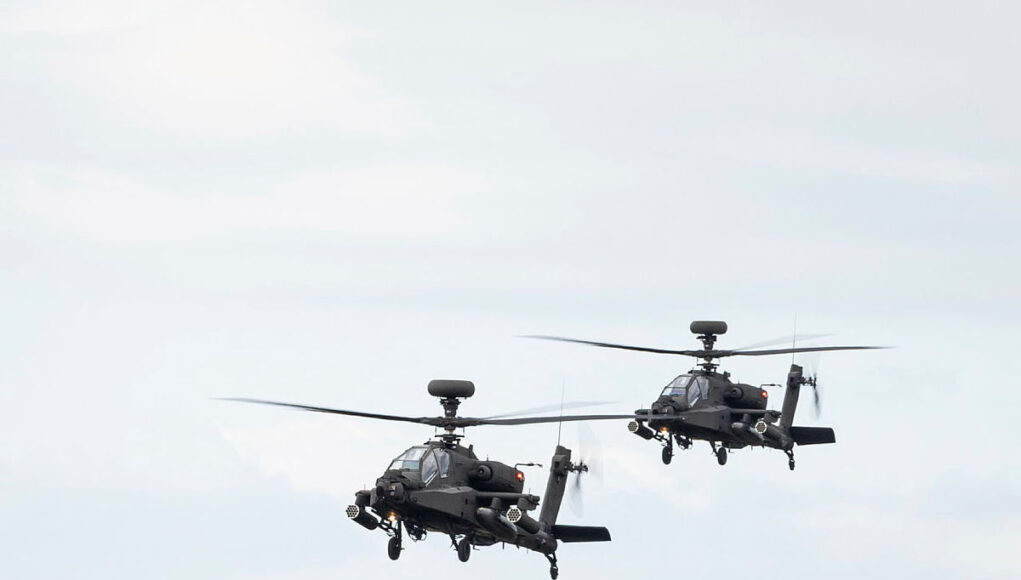 The AH-64E variant includes upgraded engines, improved digital connectivity and the ability to work alongside unmanned aerial systems, allowing crews to control or receive data from drones during operations.