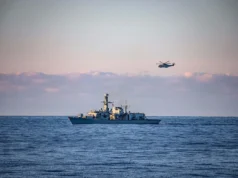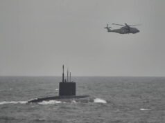 HMS Mersey was deployed alongside a Wildcat helicopter from 815 Naval Air Squadron and a Merlin Mk2 from 824 Naval Air Squadron to monitor the Russian Navy’s Kilo-class submarine Novorossiysk and her accompanying Goryn-class tug Yakov Grebelski.