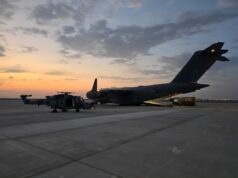 A Royal Navy Wildcat helicopter has been delivered to the Middle East by a Royal Air Force C-17 Globemaster, supporting the ongoing deployment of HMS Lancaster as part of Operation Kipion.