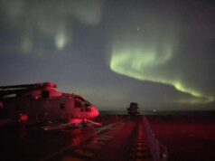 HMS Queen Elizabeth's crew were treated to a spectacular display of the Northern Lights.