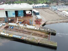 The former 'wet basin' has now been filled in preparation for the construction of a massive shipbuilding hall, representing a considerable increase in capacity for Scottish shipbuilding.