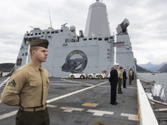 During its stay, the Mesa Verde intends to unload equipment and vehicles of the U.S. Marine Corps.