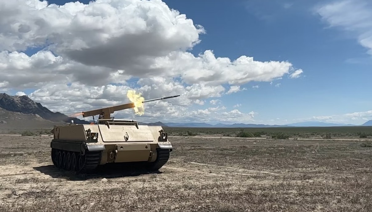 BAE Systems said in this news release that the test marked the first time an APKWS laser-guided rocket has ever been fired from a robotic combat vehicle (RCV).