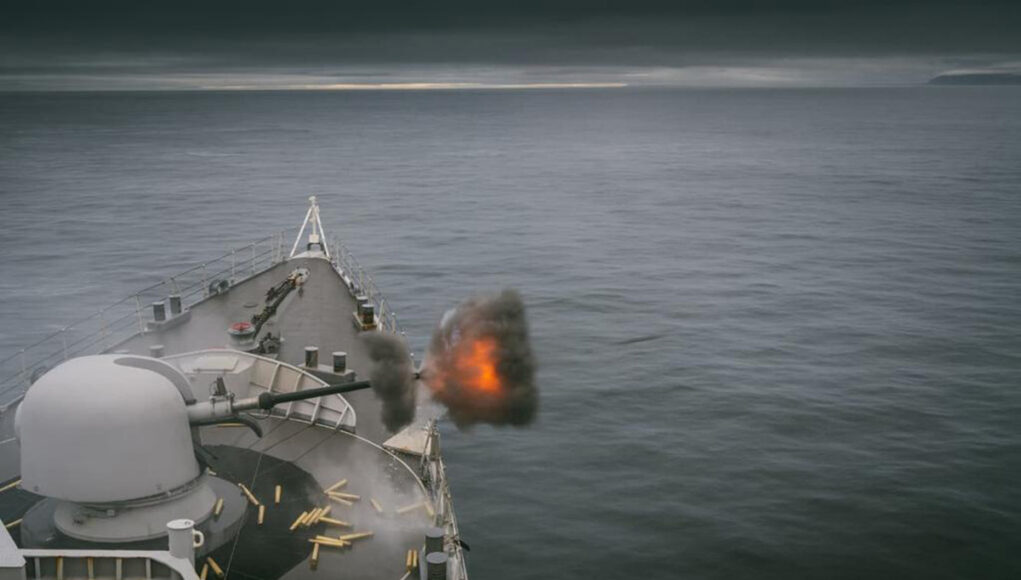 💥Shooting the 76mm gun aboard frigate Louise-Marie takes a full team working in sync. During a GUN exercise for #STRIKEWARRIOR, the ship hit targets on shore, with Royal Army spotters verifying the shots. pic.twitter.com/AEzogZT31O