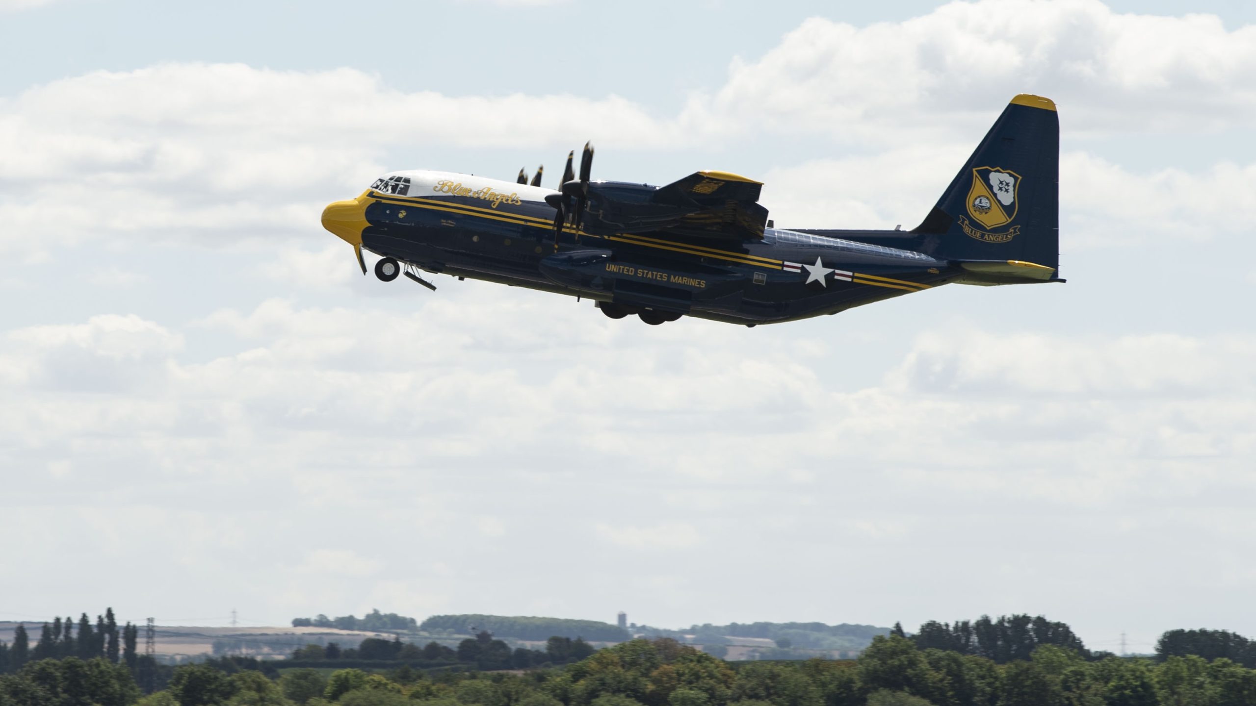 The Blue Angels U.S. Navy Flight Demonstration Squadron have taken delivery of a C-130J aircraft formerly belonging to the Royal Air Force.