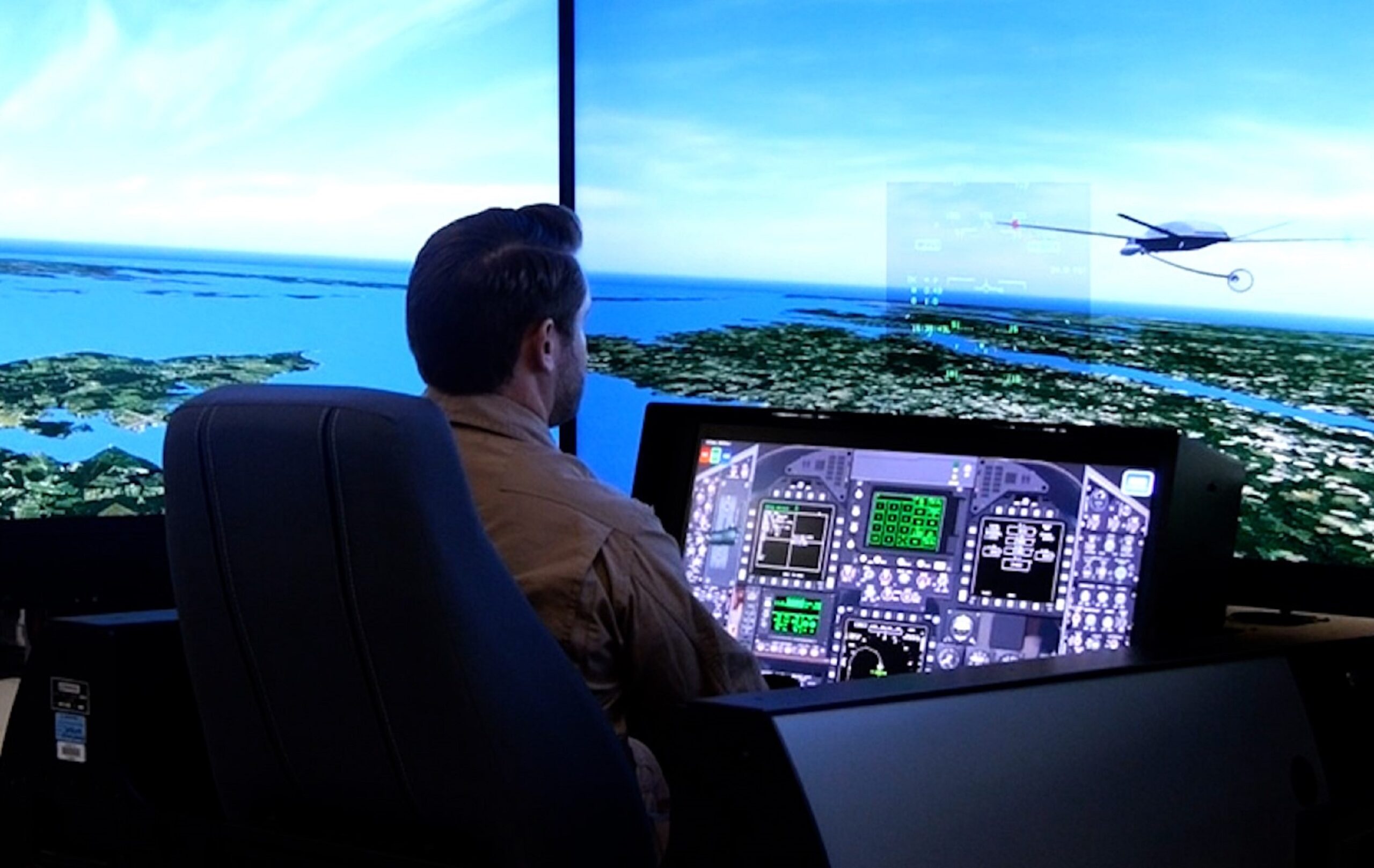 In a simulated environment, Boeing’s team successfully conducted a demonstration where a F/A-18 pilot remotely commanded an unmanned MQ-25 to deploy a refuelling drogue and refuel the Super Hornet.