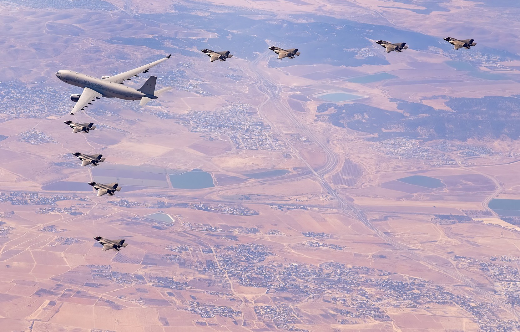 Images also show a British Voyager tanker leading the formation of aircraft above.