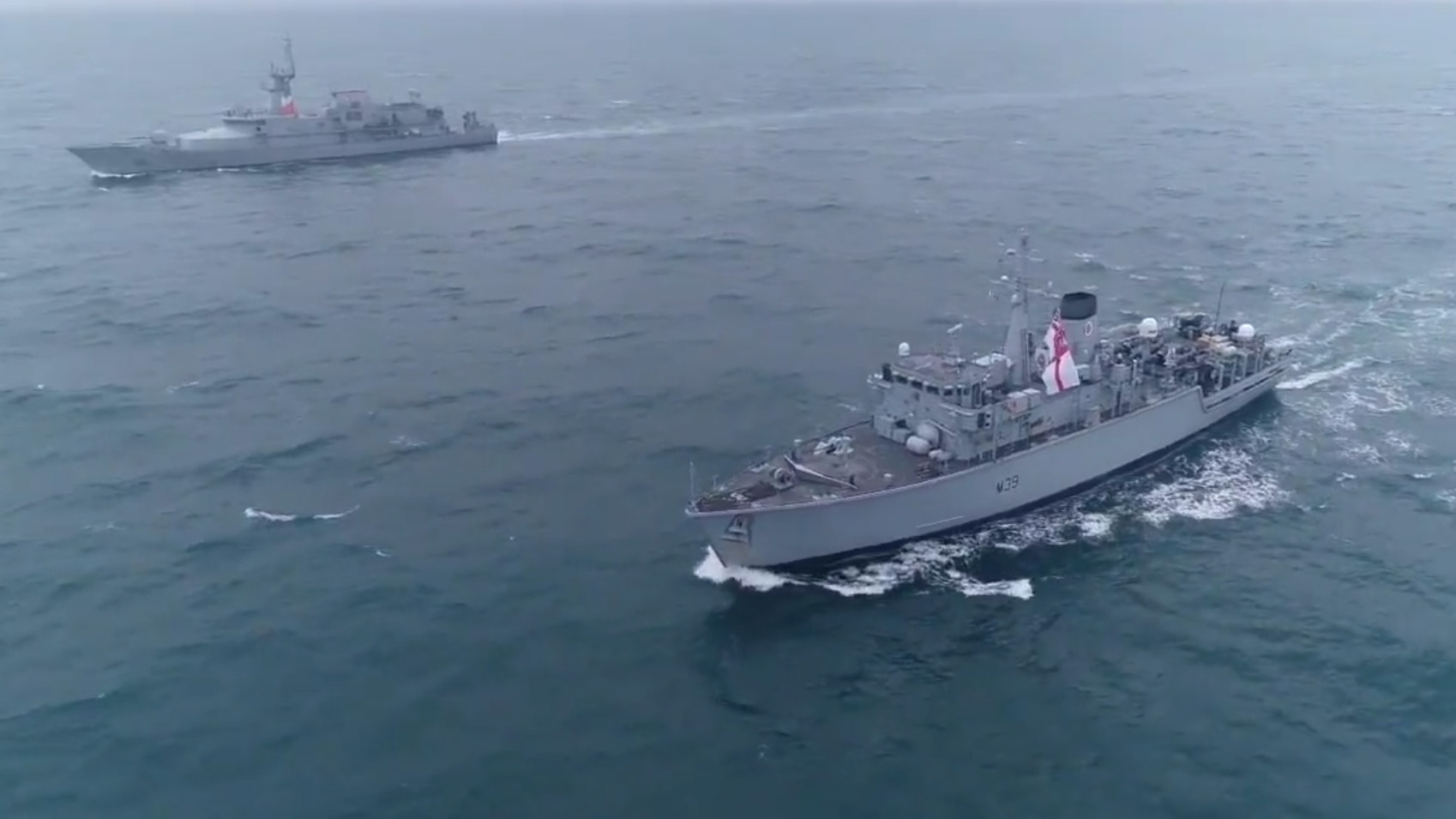 Great to see 🇮🇪 @naval_service LÉ Samuel Beckett & 🇬🇧 @RoyalNavy HMS Hurworth undertake a #PASSEX following HMS Hurworth visit to Dublin #MCM2 #SmallShipsBigImpact