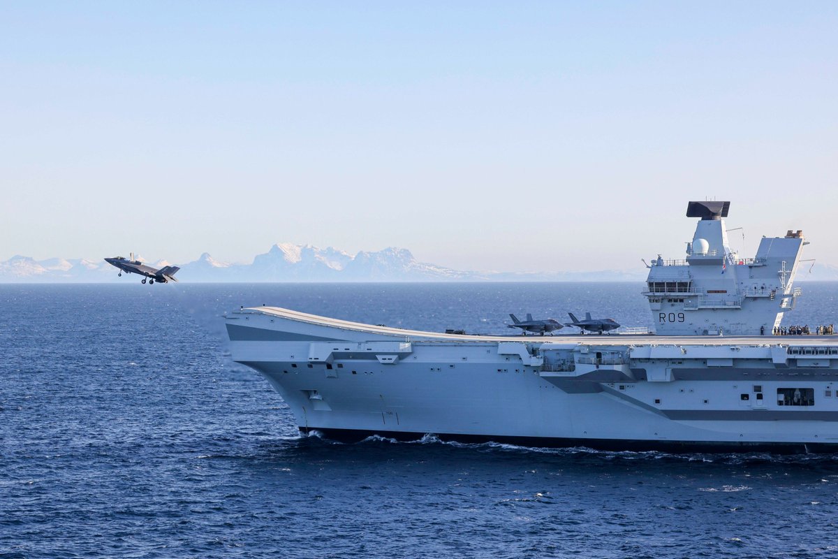 Our @OC617Sqn F-35B jets are now exercising in the Arctic skies over Norway, launching from @HMSPWLS on the coast to simulate defending the territory of our allies inland. pic.twitter.com/3CQL34RaZ1