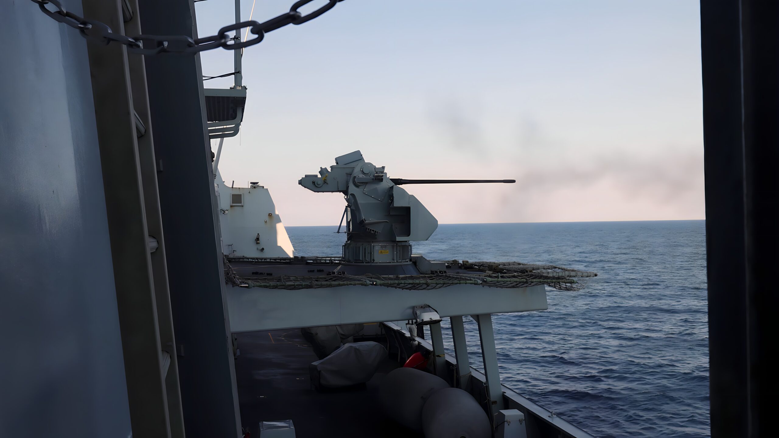 According to the Royal Navy, the gunnery serials took place on 6 July 2025 and included engagements using General Purpose Machine Guns (GPMG), Heavy Machine Guns (HMG), and the ship’s 30mm cannons against floating targets. These activities form part of the ship’s routine combat readiness drills as it escorts the UK Carrier Strike Group on its flagship deployment of the year.