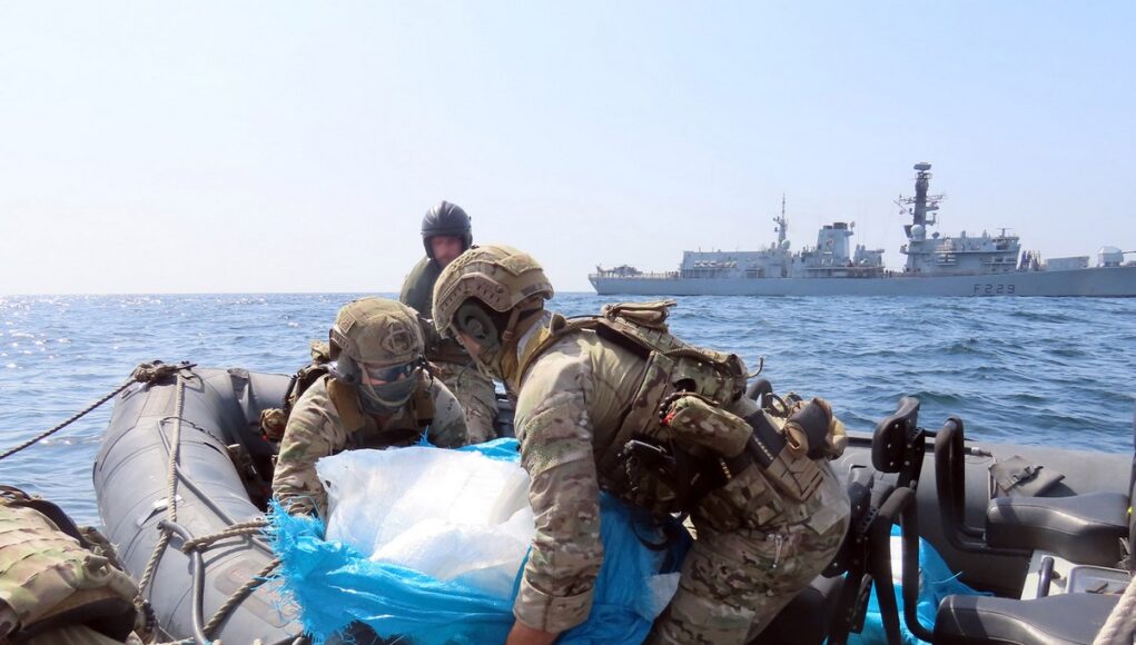 The smugglers attempted to evade the 815 Naval Air Squadron helicopter and ignored all radio calls instructing them to stop. Their vessel was subsequently intercepted by the British frigate before they could enter Iranian territorial waters.