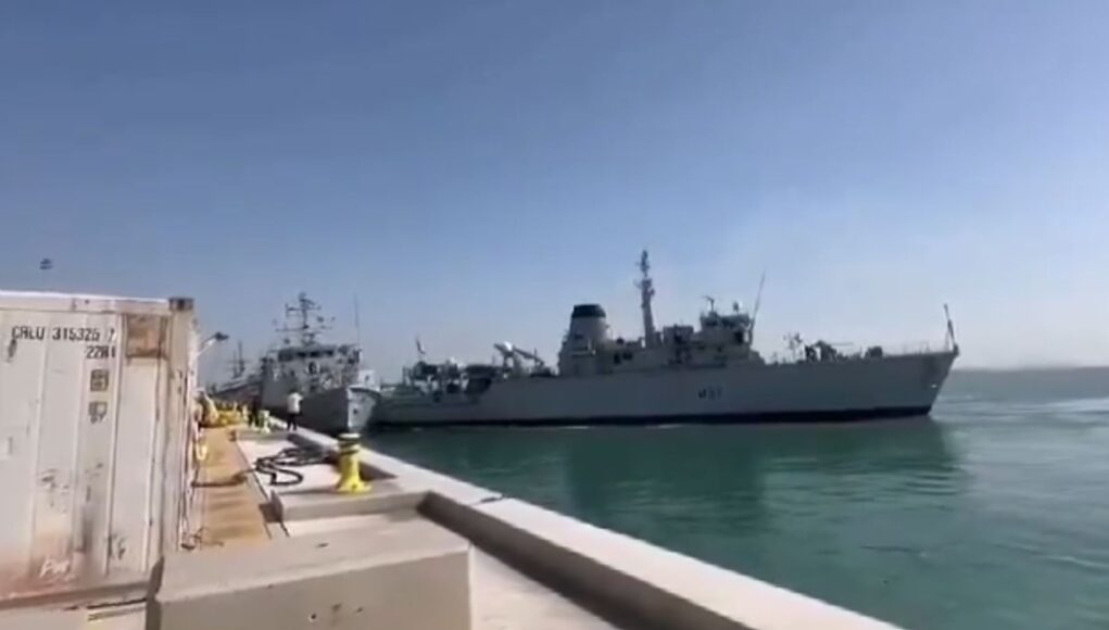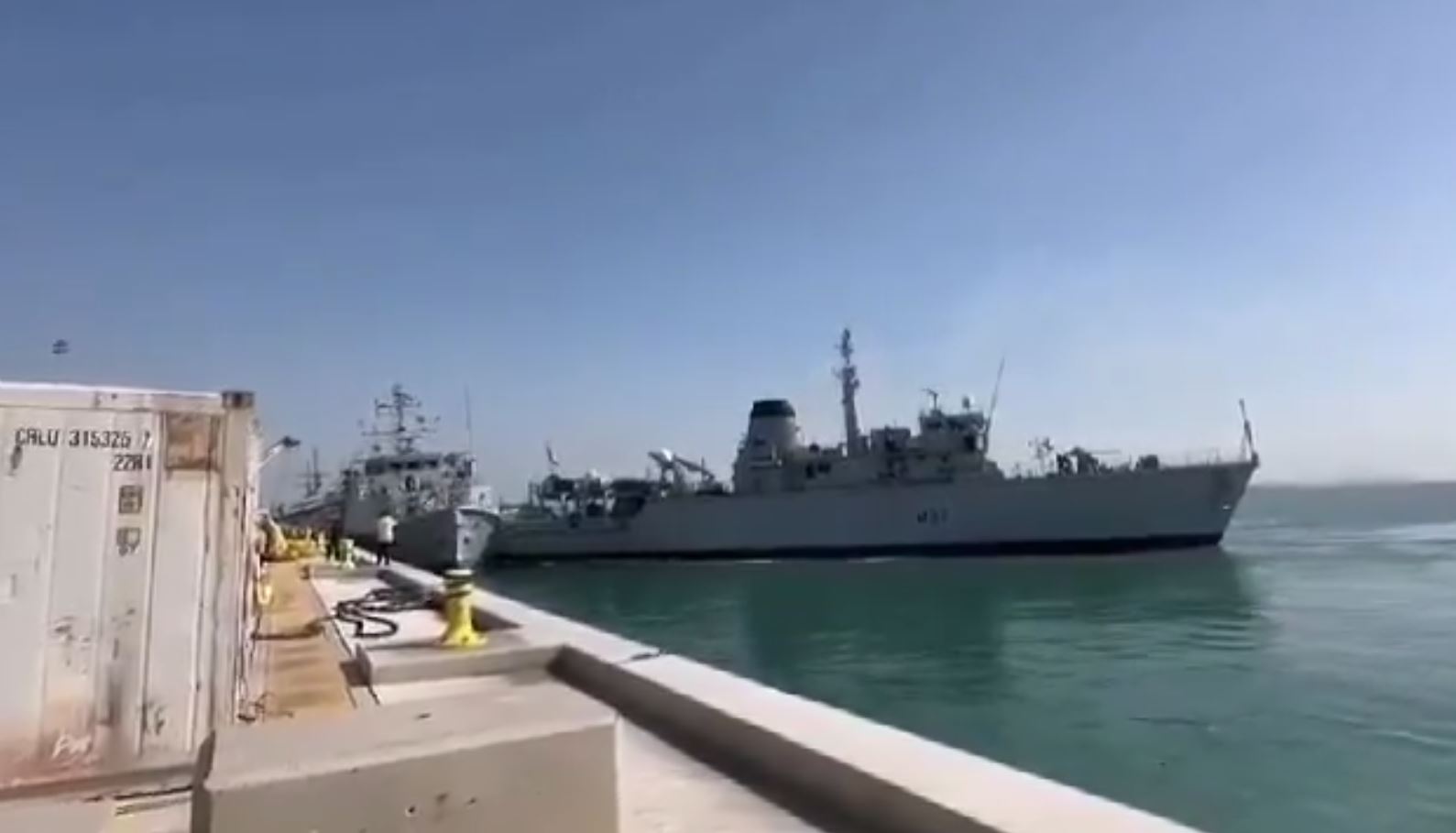 Video shows a collision between two Royal Navy vessels in the Gulf.