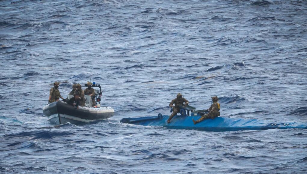 The interception took place 190 nautical miles south of the Dominican Republic, where Trent’s boarding team, which included US Coast Guard personnel, Royal Marines from 47 Commando, and specialist sailors, seized 2,000kg of cocaine from the semi-submersed vessel.
