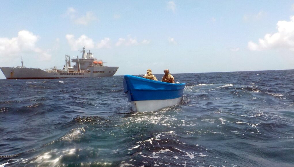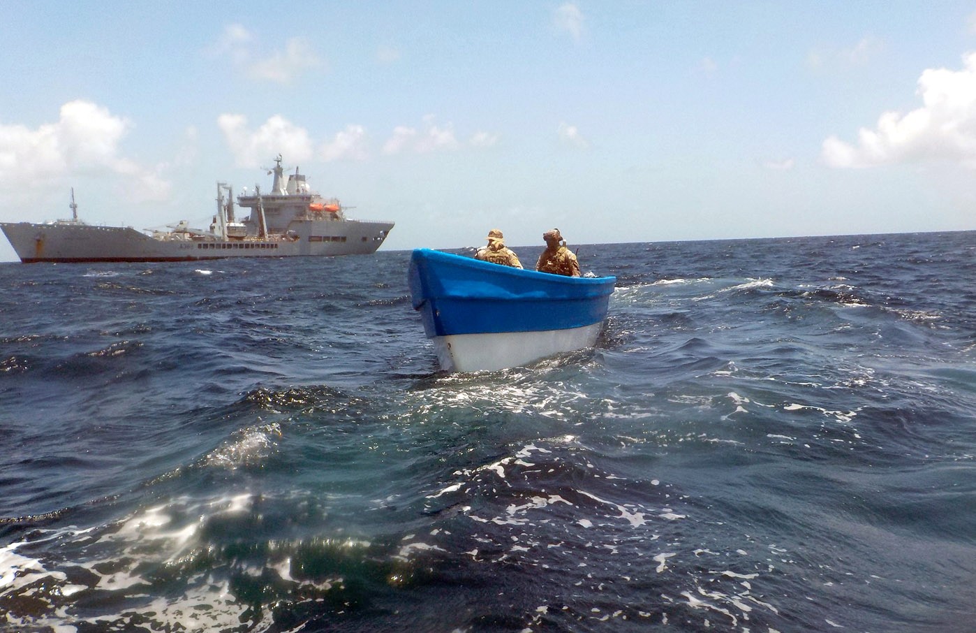 The tanker closed in and launched her sea boat, carrying the embarked US Coast Guard Law Enforcement Detachment, to intercept the vessel and detain its occupants.