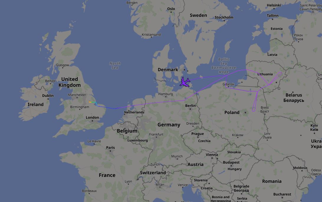 A Royal Air Force RC-135W Rivet Joint has carried out an intelligence-gathering orbit around Kaliningrad.