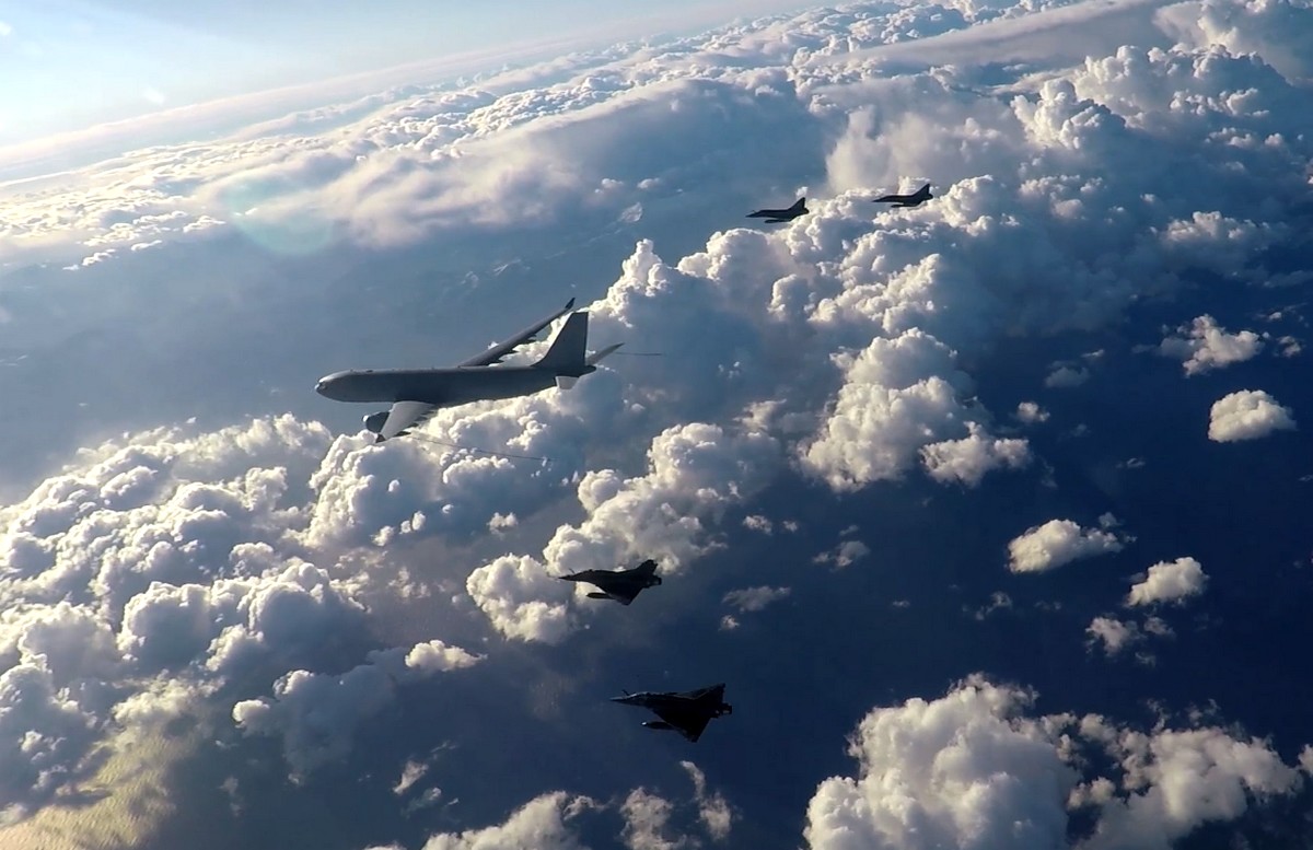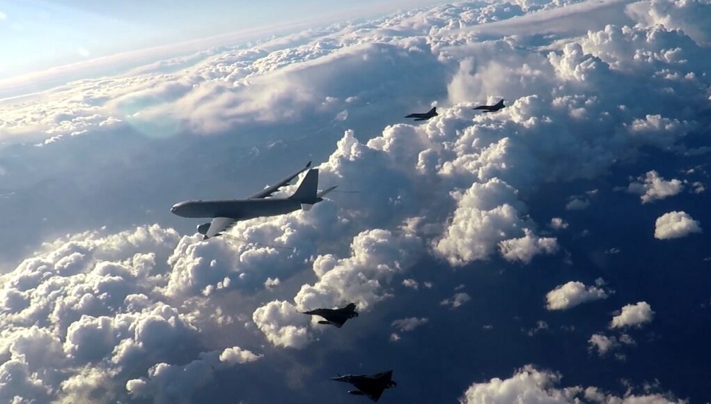 “The Voyager tankers based at RAF Brize Norton in Oxfordshire provided Air-to-Air refuelling for the French jets throughout their near 4000-mile journey to North East Africa to take part in their Exercise SHAHEEN.