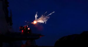 British warship shoots down waves of attack drones
