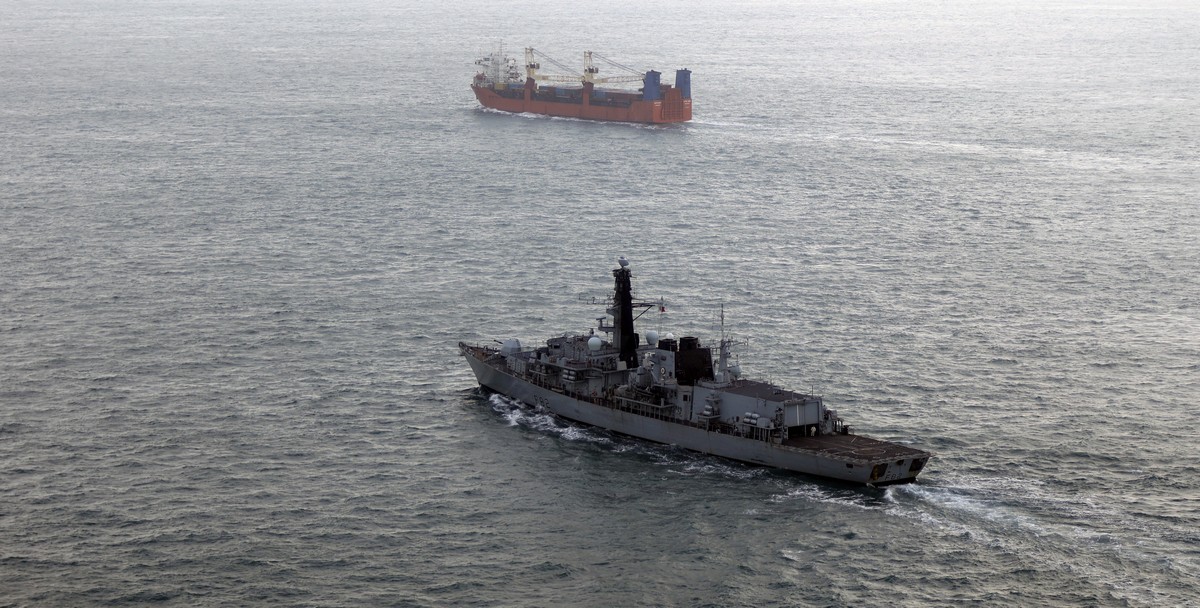 HMS Somerset, a Type 23 frigate, closely observed the movements of the Russian Steregushchiy-class corvette Boikiy, which was escorting the merchant vessel Baltic Leader from Syria through the English Channel and the North Sea.