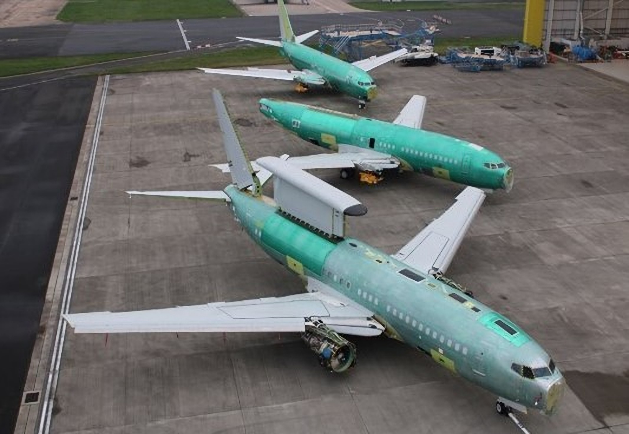 Progress on our 3 future Wedgetail AEW Mk1 airborne early warning and control aircraft continues apace in Birmingham. A hangar reorganisation saw all 3 outside this week, the first now sporting a Multi-role Electronically Scanned Array sensor #securingtheskies pic.twitter.com/XlT91ApLkP