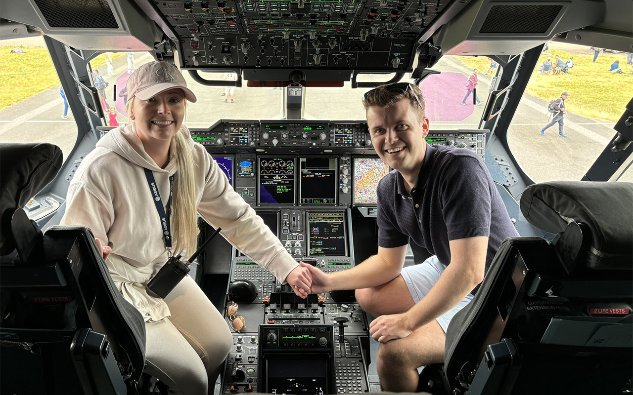 RAF crew and onlookers experienced a heartwarming moment at this year’s Royal International Air Tattoo (RIAT) when a couple got engaged in the cockpit of an RAF A400M Atlas.