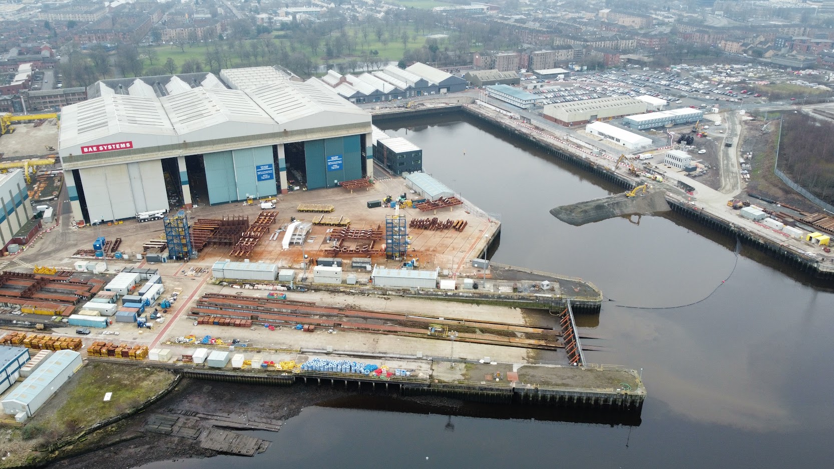I recently reported that planning permission had been granted for a huge new shipbuilding hall at the BAE Systems site in Govan, with work on the first ship to be built in the facility starting in 2024. The wet basin at Govan will now be drained, and a covered build hall will be constructed on the site, allowing for later Type 26 frigates to be built indoors.