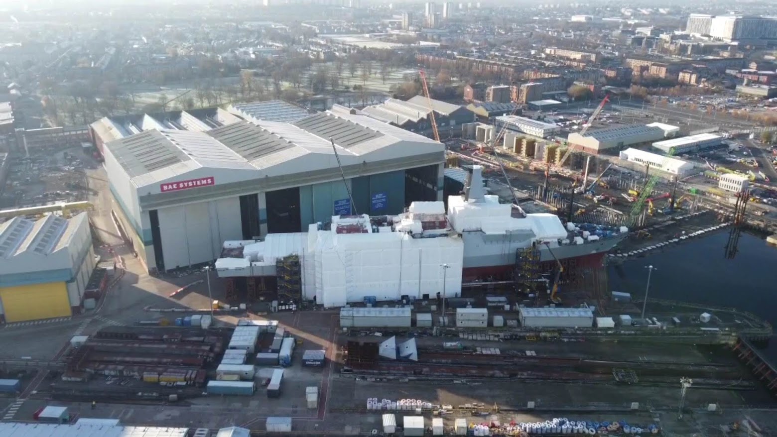The ship is undergoing structural work before being floated and transported to BAE Systems’ Scotstoun facility in 2024 for outfitting.