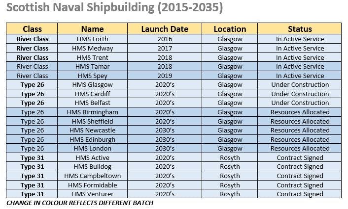 18 ships of three types, excluding the two aircraft carriers, have been or will be launched from Scottish yards between 2014 and the 2030’s.