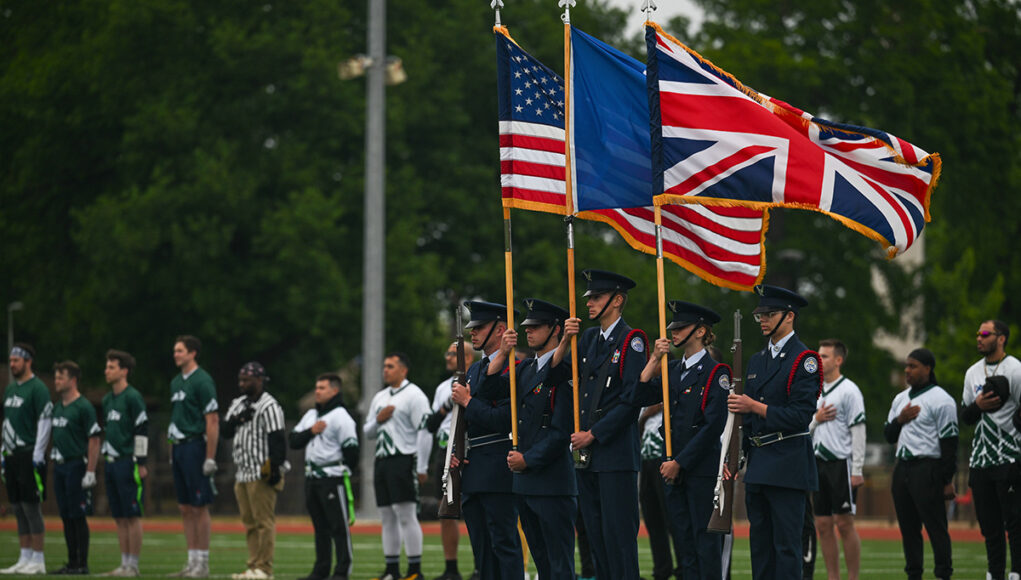 Players from the U.S. tri-base area (RAF Lakenheath, RAF Mildenhall, and RAF Feltwell) faced off against teams from the UK Armed Forces and the French Armed Forces’ Football Américain des Armées in a day filled with friendly competition, camaraderie, and cultural exchange.