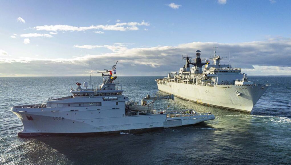 The Plymouth-based amphibious assault ship pretended to be dead in the water in the Channel – with the Garonne throwing her a line, figuratively and physically. From the British side, the complex seamanship exercise was overseen by the MoD’s Salvage and Marine Operations (SALMO) team which provides salvage, towing, and heavy lift capability.”