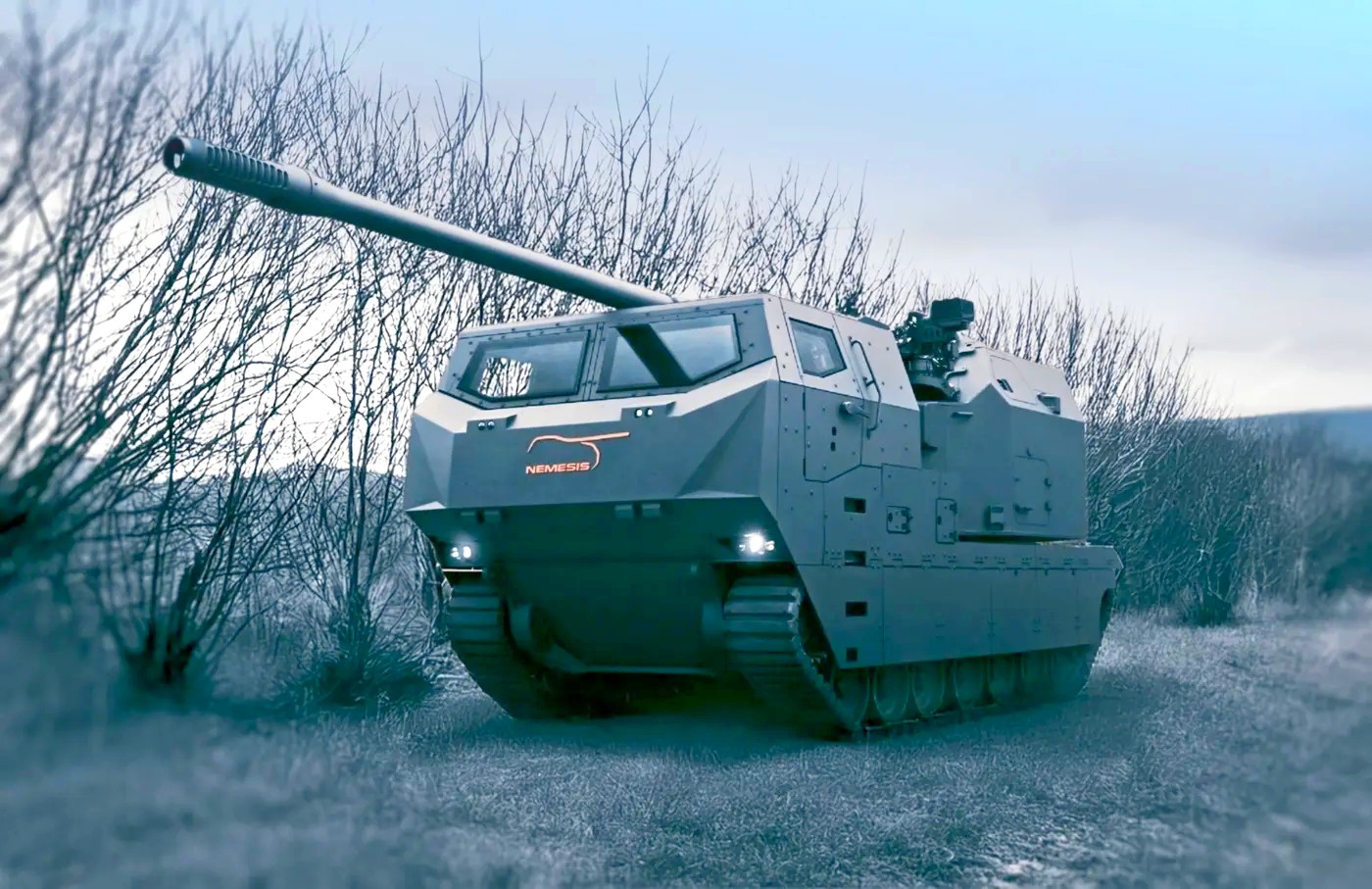 The NEMESIS is built on the ASCOD platform, powered by a 1100 hp diesel engine. It can be equipped with steel or composite rubber tracks and is designed to operate on a variety of terrains. The system’s mobility is intended to enable rapid deployment and repositioning after firing, known as “Shoot & Scoot” tactics.