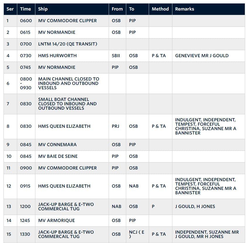The vessel will begin to leave Portsmouth Harbour around 8:30am on Tuesday.