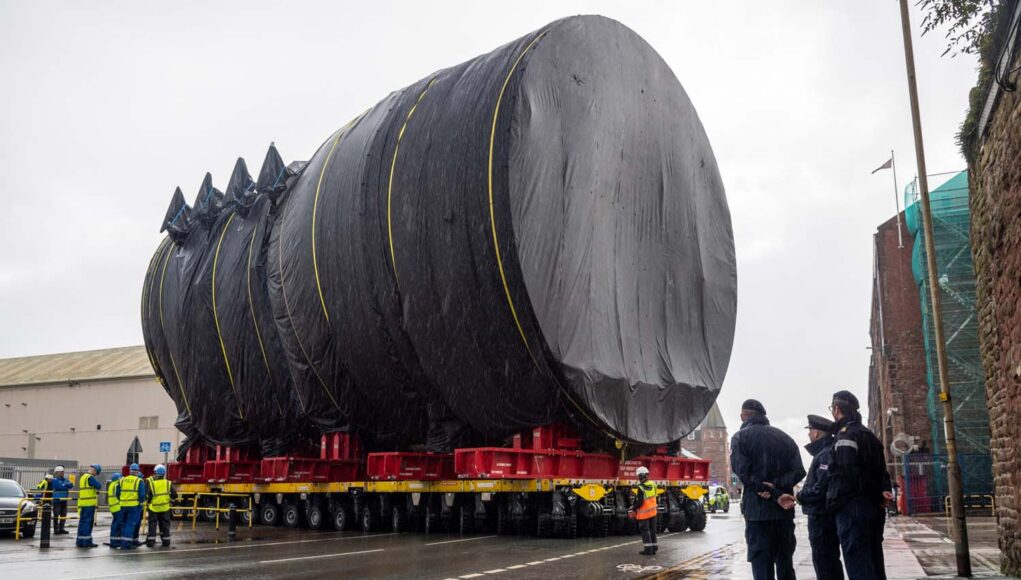 “No-one at BAE Submarines has moved a submarine section of this size (22 metres long) in 30 years, when a low-loader carefully transported the 34-metre-long fore-end ‘mega unit’ of HMS Vengeance, the last of the Vanguard-class submarines.
