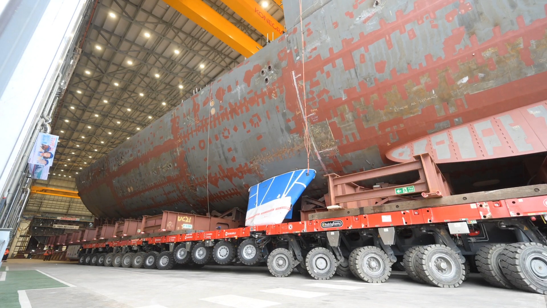 The construction of HMS Belfast, the third Type 26 City-class frigate for the Royal Navy, reached a key milestone this week as the ship’s aft block was successfully moved into the newly opened Janet Harvey Hall at BAE Systems’ Govan shipyard in Glasgow.