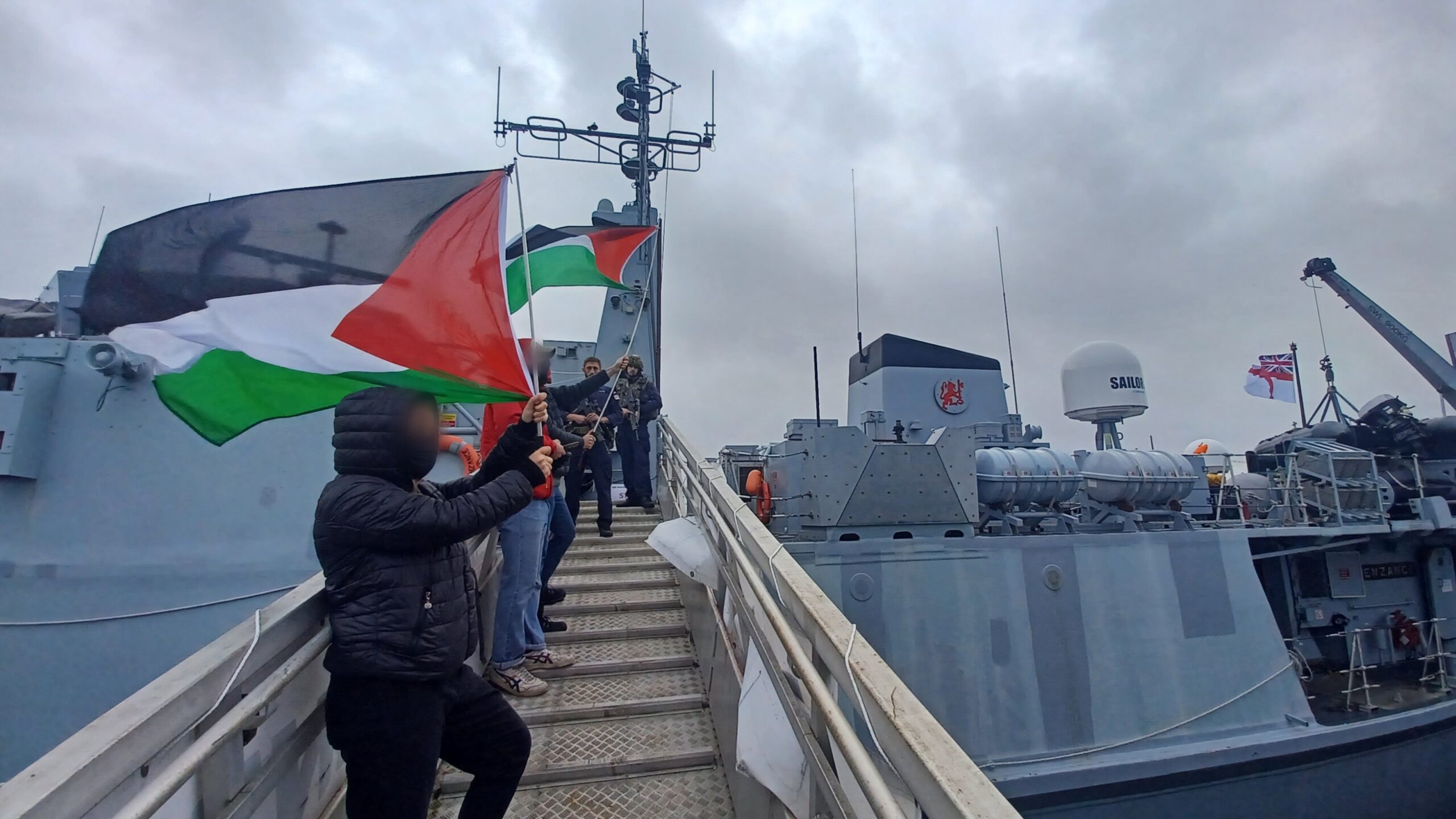 HMS Penzance, a minehunter, was the scene of multiple arrests whilst docked in Dublin after a small group of activists appeared at the vessel to protest non-existent British arms supply flights to Israel.