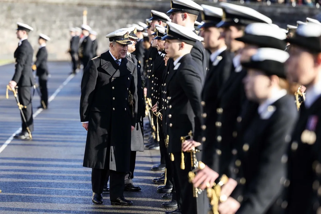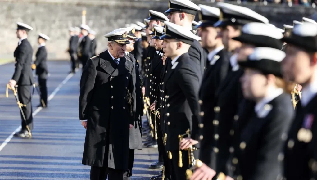The King inspected ranks during the Lord High Admiral’s Divisions, a ceremony that formally concludes 29 weeks of initial officer training. The parade included cadets from the UK and allied nations, with future officers from the Bahamas, Kuwait, Malta, Oman, Qatar and the UAE among those on the parade ground.