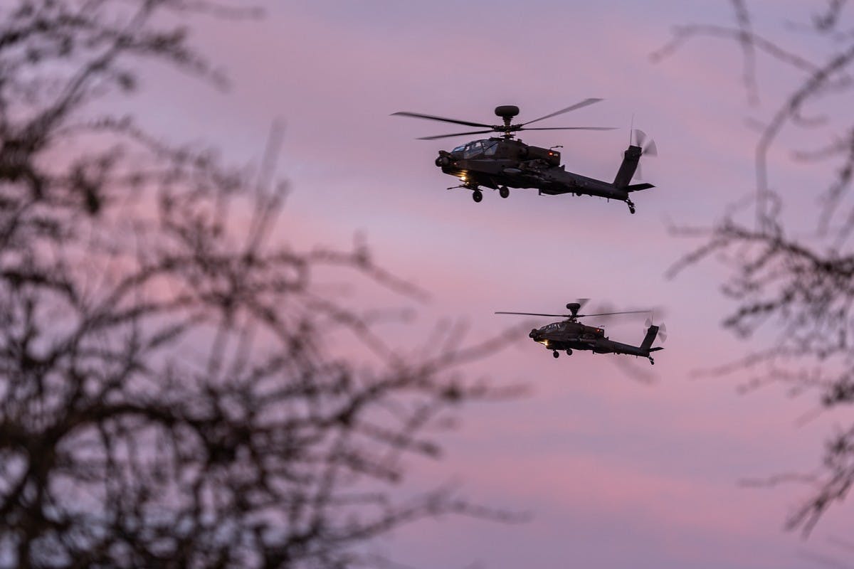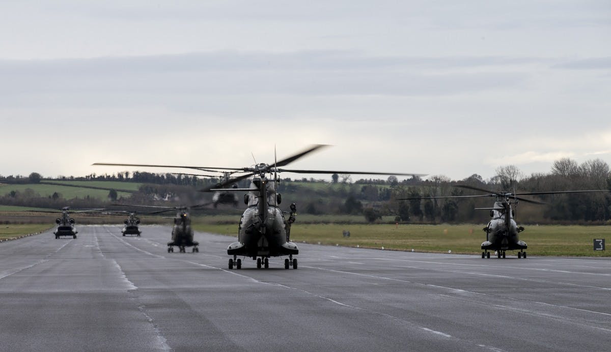 Mounting at Keevil airfield on Salisbury Plain, the Ministry of Defence say that vehicles and stores were “lifted by Royal Air Force Chinook and Puma support helicopters, protected by the sensors and weapons of Army Air Corps Wildcat reconnaissance helicopters and Apache attack helicopters”. The multinational force was dropped off to assault Imber village, capturing it to use as a base for further missions on the windswept training area.