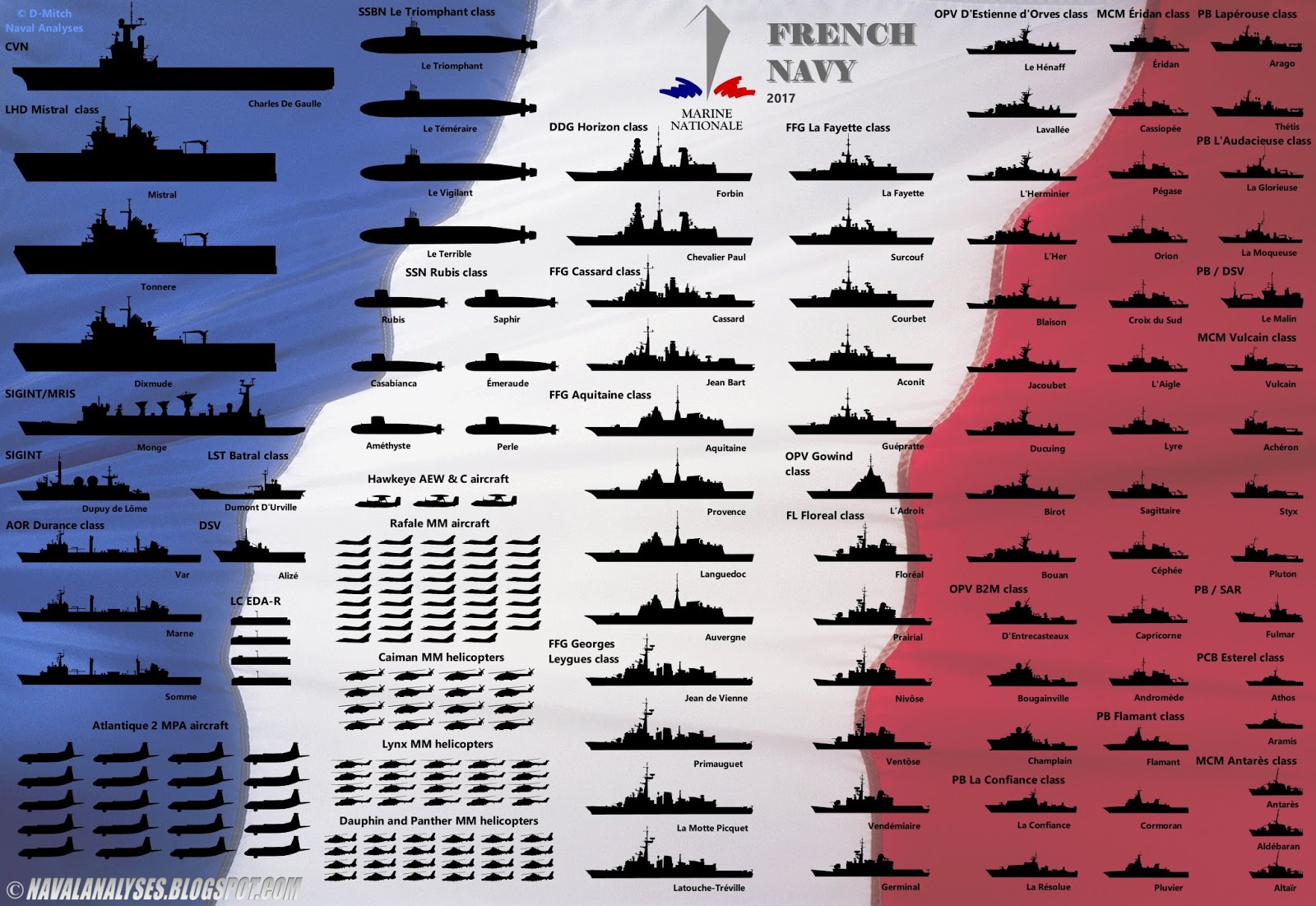 Lots of Corvette type vessels, a Sigint vessel, and a DSV that I assume is Diver Support / Seabed Ops vessel?