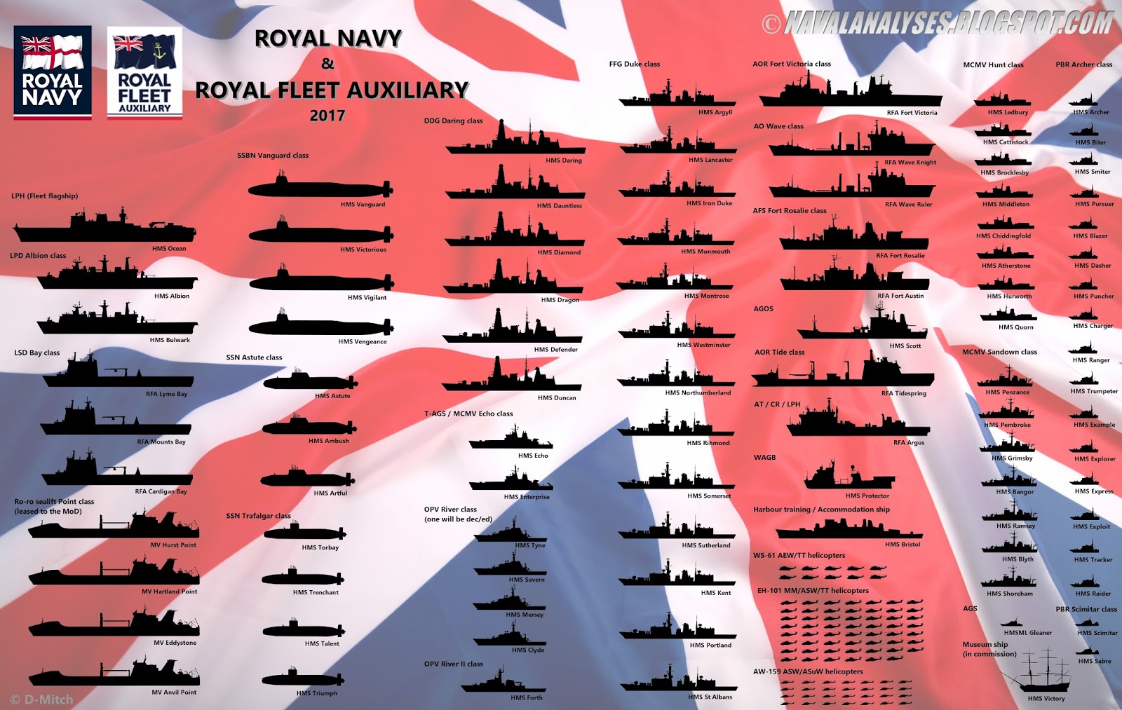 The RN currently has 56 warships – 4 big ‘uns, 10 submarines, 19 escorts and 23 minor warships.
