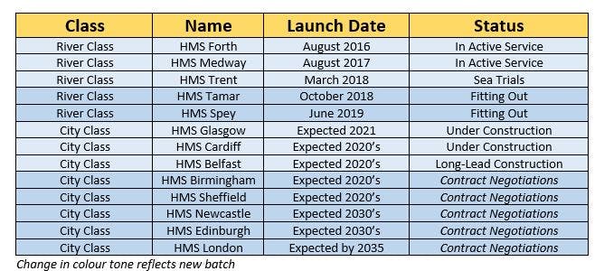 18 ships of three type, excluding the two aircraft carriers, have been or will be launched from Scottish yards between 2014 and the 2030’s.