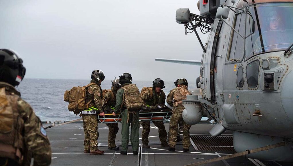 Medics onboard HMS Queen Elizabeth have tested a ‘military air ambulance’ at sea concept that will operate the next time a Royal Navy carrier group goes into action.