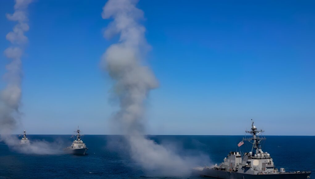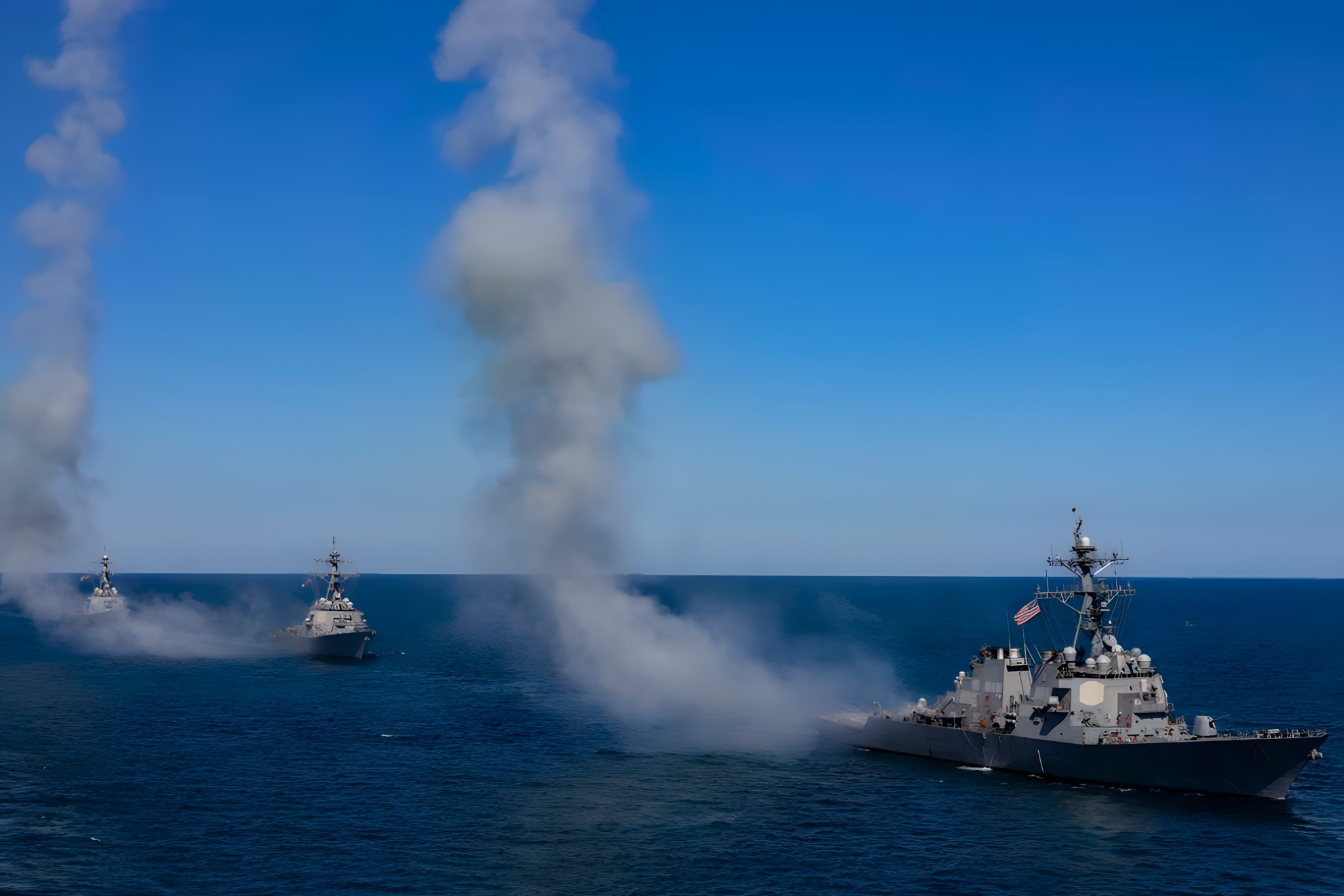 All three destroyers belong to the long-serving Arleigh Burke class, the backbone of the U.S. Navy’s surface fleet. Each vessel is equipped with the Aegis Combat System and a 90-cell Mk 41 Vertical Launch System, capable of firing SM-2 and SM-3 surface-to-air missiles, Tomahawk land-attack cruise missiles, and anti-submarine weapons. They also carry Harpoon anti-ship missiles, a 127mm Mk 45 naval gun, and close-in defences including the SeaRAM system.