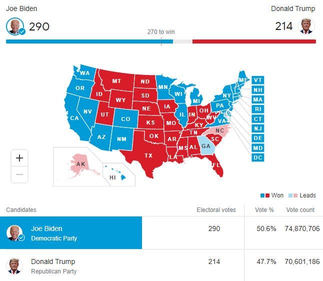 According to legal experts (also republican) the litigation is not going to produce the results Trump hopes. Because of that congratulations to Biden are justified. Media too has to be realistic, and tell people where things are realistically heading, not promote someone’s personal dreams. Media has also clearly stated, that there’s a theoretical possibility that Trump might win, so media has done it’s work properly in that regard.