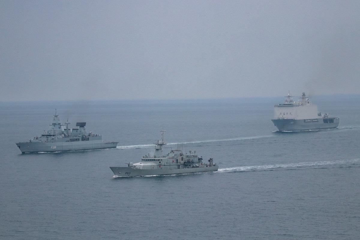 The Royal Netherlands Navy’s amphibious assault ship HNLMS Johan de Witt and the German Navy’s air-defence frigate FGS Hamburg, both part of Standing NATO Maritime Group 1 (SNMG1), took part in joint exercises with the Irish Naval Service’s LE William Butler Yeats off the Irish coast.