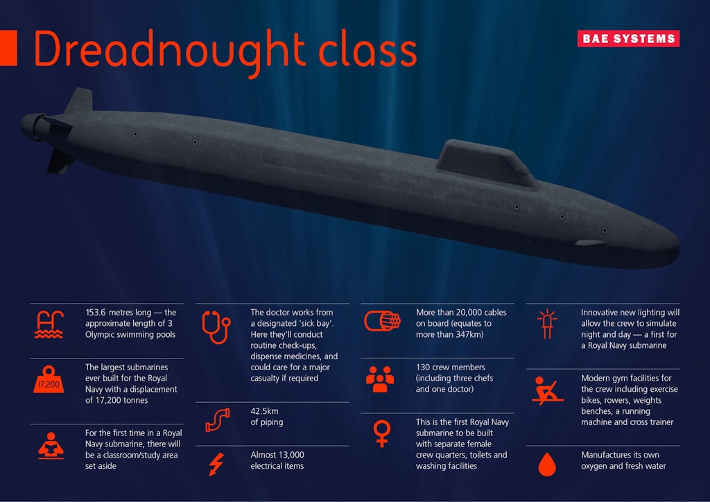 The Dreadnought class will replace the Vanguard class submarines from 2028 onwards and will host the United Kingdom’s nuclear deterrent.